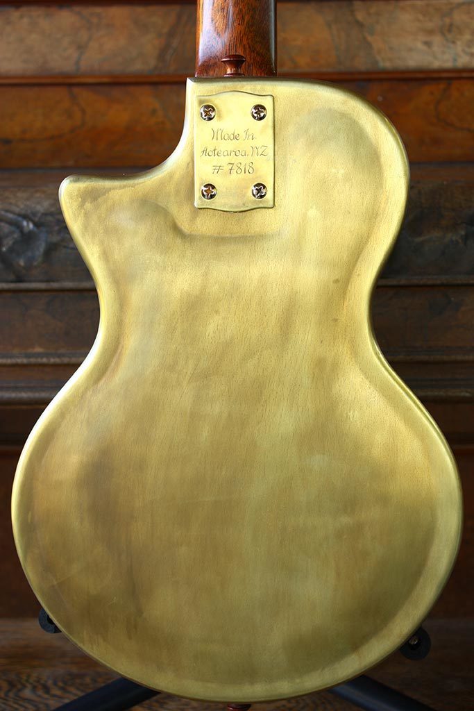 The Neck has been carved from Mahogany and veneered with a Ebony fingerboard and Burl Maple Headstock. Beautifully Lacquered with a smooth feel. I have inlayed Brass for the position markers and Headstock detail. No stickers here.