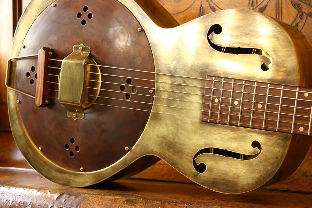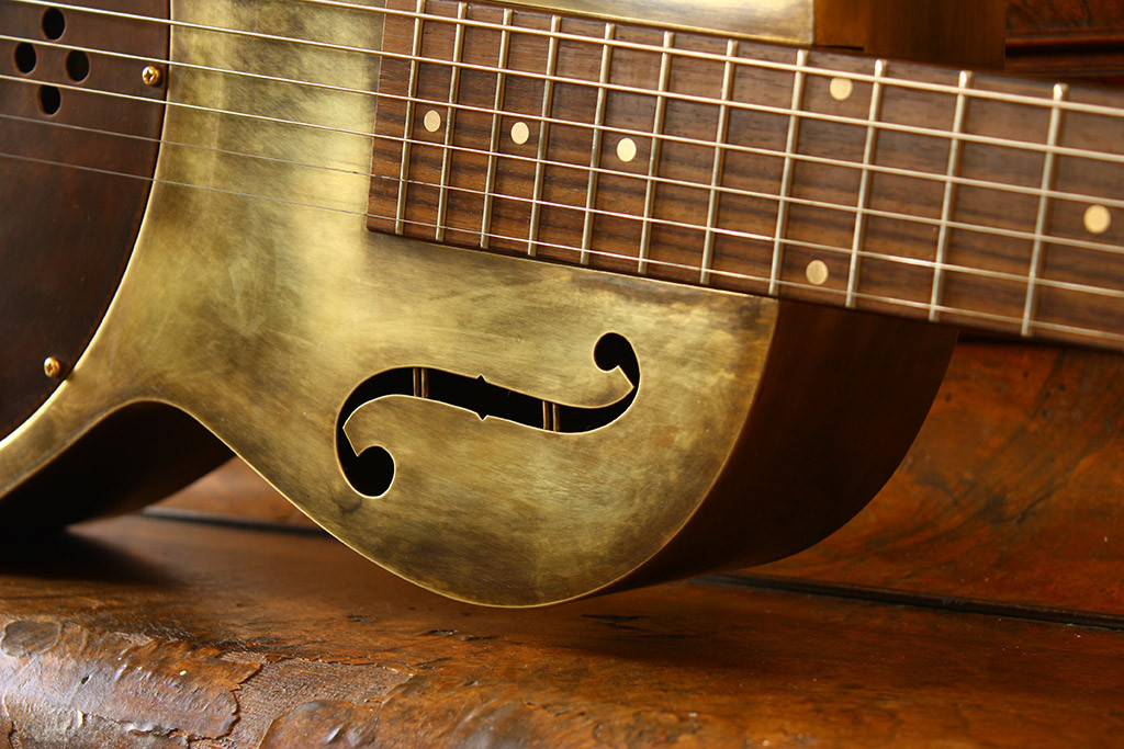 The Parlor model design draws it’s inspiration from the very early days of Blues. From Charlie Patton, Blind Lemon Jefferson and Lonnie Johnson to the days of 12 fret guitars. The Parlor is a fun guitar to play with its smaller lighter body and is available in Antique, Polished and Nickel Finish.