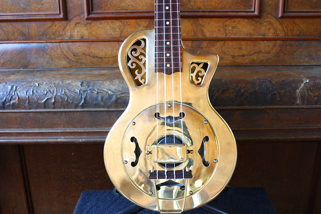 No expense has been spared in the quality of this Ukulele. Waverly Machine Tuners, the best in the world are fitted. An elegant Trapeze string holder is used. A detail rarely seen on other Reso Uke. Scroll designed, hand cut sound hole grills all show that I take quality seriously.